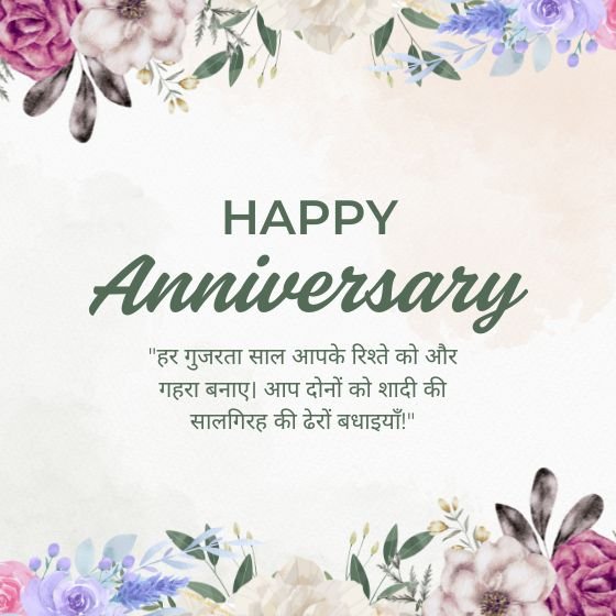 “साल दर साल आपका रिश्ता और खूबसूरत होता जाए, यही दुआ है। शादी की सालगिरह की हार्दिक शुभकामनाएँ!”