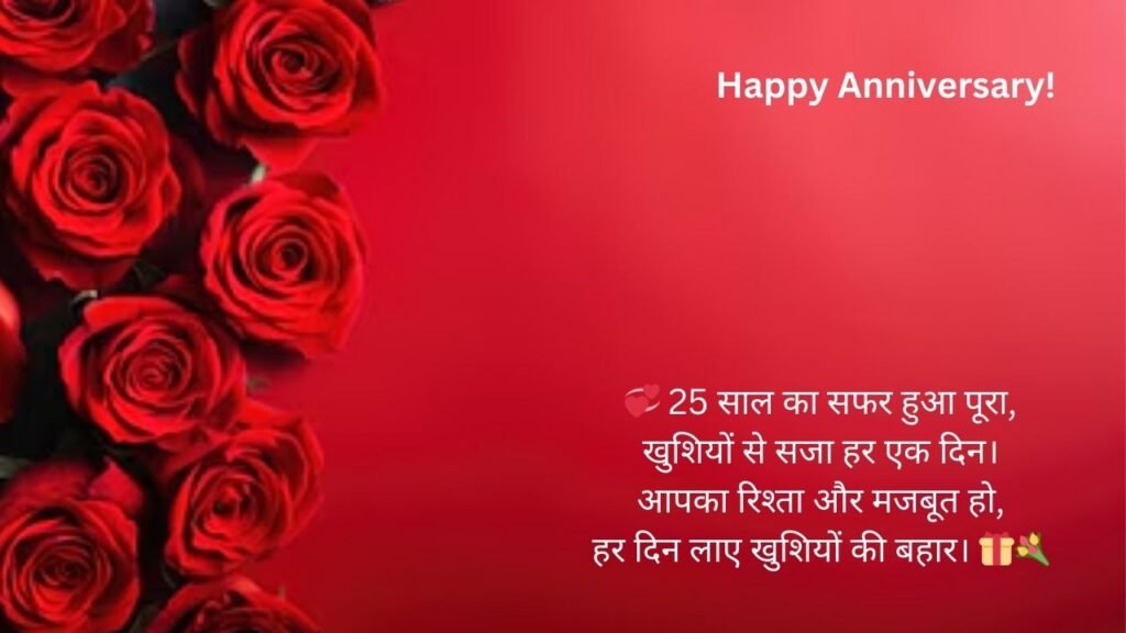 आपको और आपके प्रियजनों को 25वीं सालगिरह की ढेर सारी शुभकामनाएँ! 🎊💖