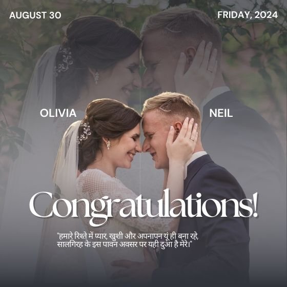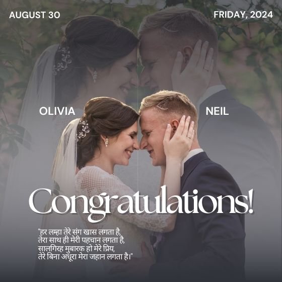 शादी एक खूबसूरत रिश्ता है, जो प्यार और विश्वास की नींव पर टिका होता है। हमारी सालगिरह इस रिश्ते को और मजबूत करने का अवसर है।