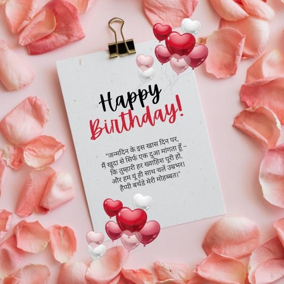 अब आइए हिंदी में जानते हैं कि आप अपने प्यार को जन्मदिन पर किस तरह के खास और दिल से निकले हुए शुभकामनाएं दे सकते हैं।